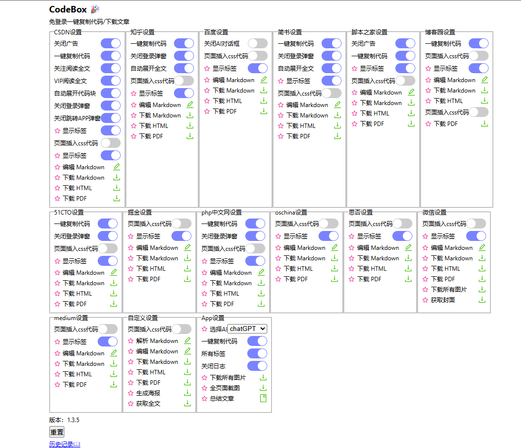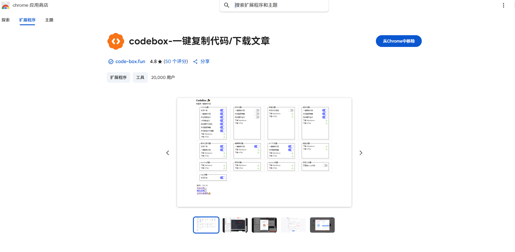 - 在浏览器中安装 【codebox-一键复制代码/下载文章】 插件