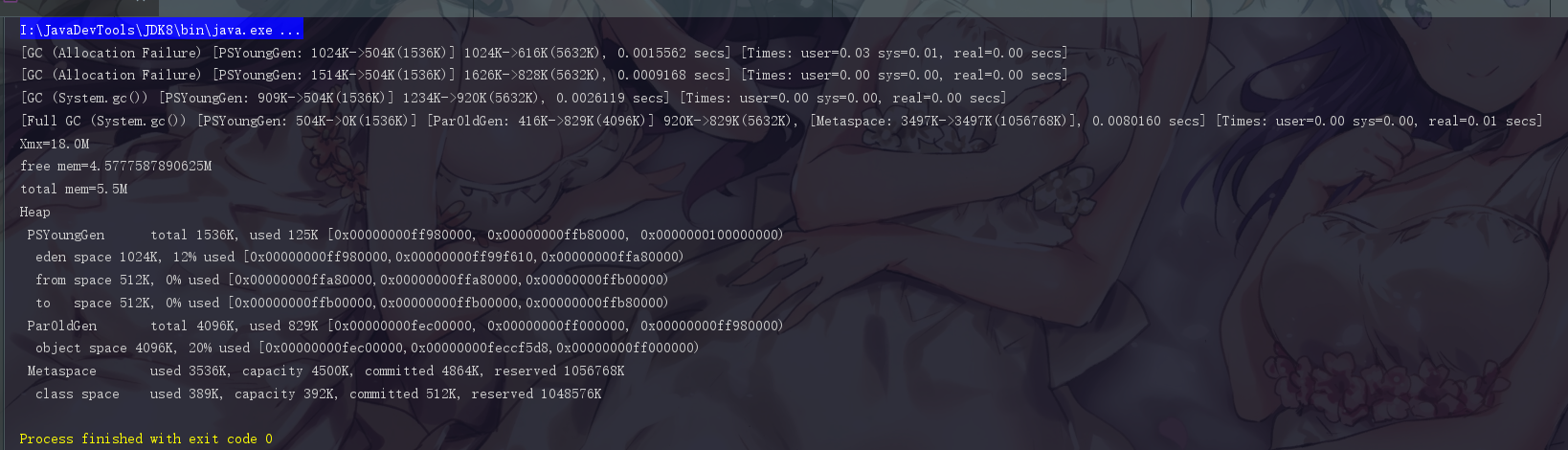 这里GC弹出了一个Allocation Failure分配失败,这个事情发生在PSYoungGen,也就是年轻代中